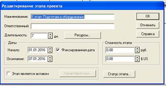 Рис. 15. Окно "Редактирование этапа проекта" этапа