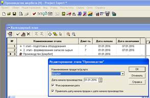 Рис. 17. Редактирование этапа «Производство»