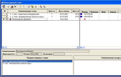 Ø Добавить этап Производство, вернувшись в окно календарный план, установить начало производства с 01.01.200_г.