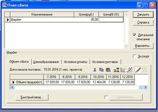 Рис. 21. Окно "План сбыта" из меню "Операционный план"