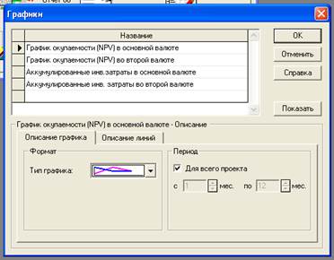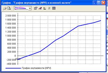 ØВ окне Результаты, с помощью кнопки Графики построить График окупаемости (NPV) в рублях.