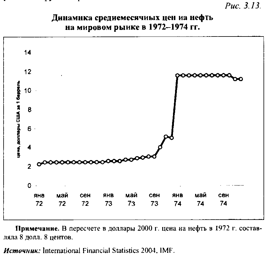 Важнейшим фактором, определившим развитие сырьевых рынков, явилось ослабление денежной политики США. Страна в 1960-х годах приняла на себя масштабные обязательства по социальным программам и одновременно была вынуждена финансировать расходы, связанные с вьетнамской войной. Это изменило мировую конъюнктуру. Рост цен на сырьевые товары начался до повышения цен на нефть в 1973 г.[197].
