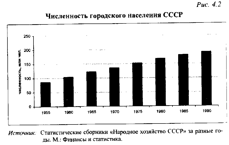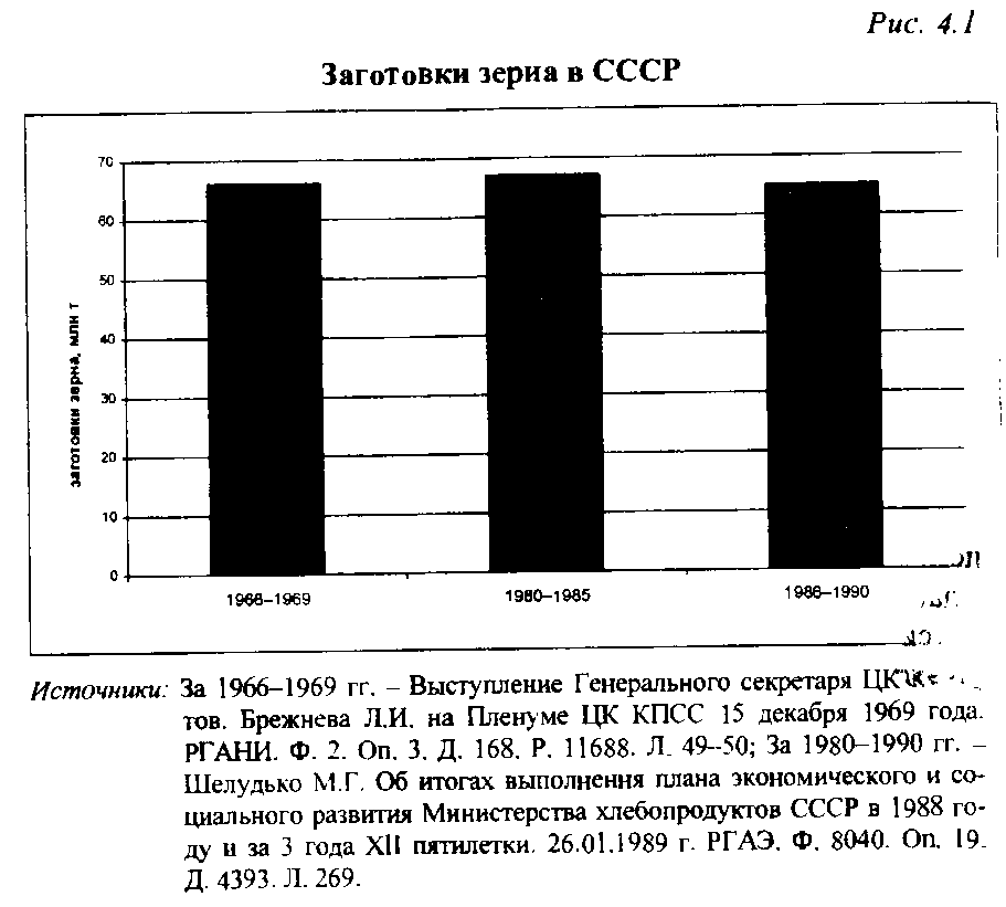 Снабжение городского населения в условиях социалистической экономики зависит от государственных заготовок сельскохозяйственной продукции. Роль механизмов, включающих рыночные элементы - колхозного рынка, потребкооперации, - в снабжении населения крупных городов - ограниченна. Остановка роста государственных закупок, их нестабильность становится все более острой проблемой для руководства страны[268]. Продовольственное снабжение городов в последующие десятилетия советской власти - ключевая тема экономико-политических дискуссий. Рисунки 4.1 и 4.2 иллюстрируют суть стратегического вызова, с которым столкнулся Советский Союз в 1960-1980-х годах.