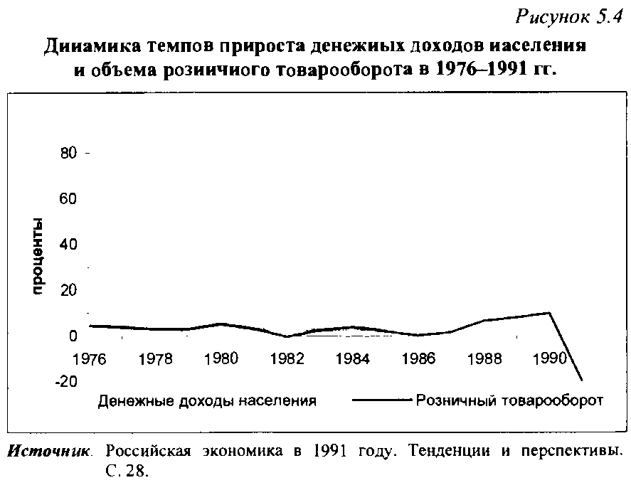 К началу 1990 г. катастрофичность складывающегося в СССР экономического положения становится очевидной (рис. 5.2-5.4).