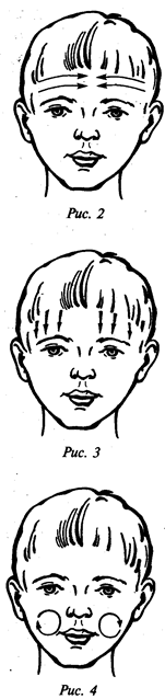 Поглаживающие движения осуществляются указательными, средними и безымянными пальцами обеих рук. Движения выполняются 6–8 раз, 2–3 раза в день (рисунок № 2).