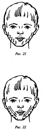 В зоне точки ИН-СЯН массаж производится большими пальцами, в зоне точки СЯ-ГУАНЬ массаж производится указательными пальцами, в зоне точки ЭР-МЭНЬ массаж производится средними пальцами. Успокаивающее воздействие достигается плавными круговыми поглаживаниями точек, с постепенным переходом к стабильному растиранию точек и, затем – к непрерывному, без отрыва пальца, надавливанию, с изменяющимся усилием. Затем интенсивность воздействия уменьшается и прекращается. Вращения осуществляются по часовой стрелке. Длительность точечного массажа зависит от реакции ребенка на воздействие, но независимо от реакции массаж не должен продолжаться более 1 минуты (для взрослых более 3 минут) и 1 раза в день (рисунок № 20).