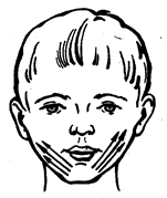 Описание: растирание скуловой мышцы от середины подбородка к мочкам ушей.