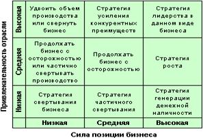 ü Стратегия частичного свертывания – предприятие занимает средние позиции в непривлекательной отрасли. Следует извлечь максимальный доход с того, что осталось, а затем инвестировать в перспективные отрасли.