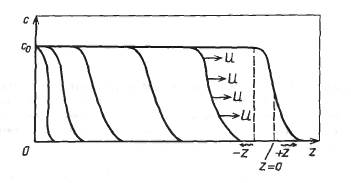 Концентрация в этой движущейся системе координат будет функцией только z, поскольку неизменный профиль перемещается вместе с новой системой координат.