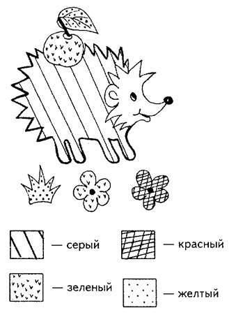 Детям нужно раскрасить ежика в соответствии с условными обозначениями, приведенными на рисунке (рис. 1).