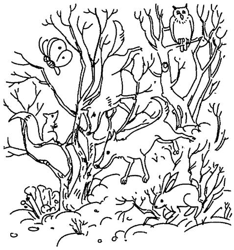 Детям нужно внимательно посмотреть на рисунок (рис. 2) и найти всех зверей, которых изобразил художник.