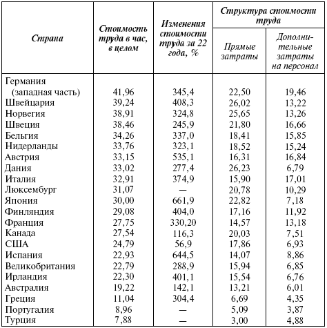 Стоимость труда на предприятиях обрабатывающей промышленности, долл. США[22]