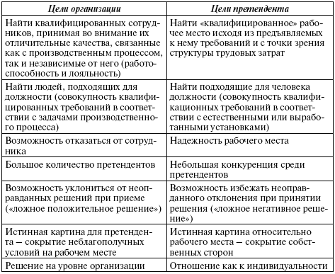 Различия целей свидетельствуют о том, что отбор и найм сопровождаются серьезным социальным конфликтом. Стандартные интересы работодателя – поиск и отбор высокоэффективного и лояльного по отношению к организации сотрудника, которого, однако, «привязывать» к себе» следует только до тех пор, пока его деятельность приносит пользу в виде прибыли. Несмотря на законы о защите труда, так называемые «слабые» категории наемных работников (иностранная рабочая сила, беременные или необученные женщины, лица с физическими недостатками) при снижении загрузки оборудования подвергаются опасности быть уволенными или вытесненными при найме на работу более «сильными» претендентами.