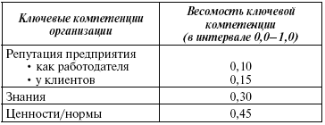 Существенным аспектом в анализе компетенций является определение взаимосвязей между ключевыми компетенциями предприятия (в нашем случае – приведенными в табл. 5.5) и индивидуальными компетенциями сотрудников. Матрица, состоящая из строк (ключевых компетенций) и граф (профессиональных способностей работника) позволяет определить отсутствие связи между обоими элементами или ее наличие, проранжированное по силе проявление: слабое, среднее или сильное (табл. 5.6).