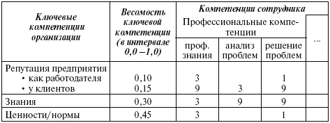 Таблица 5.6 иллюстрирует такой целевой вклад одного виртуального работника, а также то, как он посредством своих профессиональных компетенций обеспечивает выполнение ключевых компетенций. Его профессиональные знания показывают сильную взаимосвязь с репутацией предприятия у клиентов, в то время как способности к решению проблем обеспечивают только «подчиненный» вклад в поддержку ценностей и норм.
