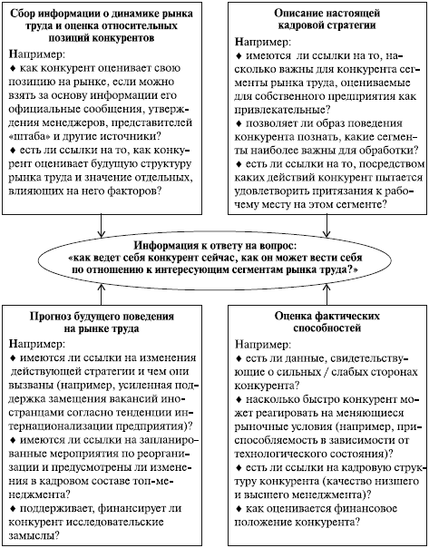 Сегменты рынка труда, привлекательные для предприятия-работодателя, могут оказаться привлекательными и для других хозяйствующих субъектов. Поэтому анализ возможностей и намерений основных соперников (конкурентов) является самостоятельным, логически обусловленным звеном маркетинга персонала.