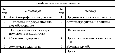 Заключительное решение о содержании персональной анкеты принимает работодатель, предварительно получив согласие по этому вопросу Совета предприятия и согласовав его с требованиями Закона о защите данных.[111] Факт защиты – как обязательство перед кандидатом и напоминание кадровой службе – в большинстве случаев указывается в начале или конце анкеты. С целью как можно большего приближения теории персонального анкетирования к реалиям «усредненного» предприятия ученые предлагают укрупненный вариант разделов (табл. 5.23).
