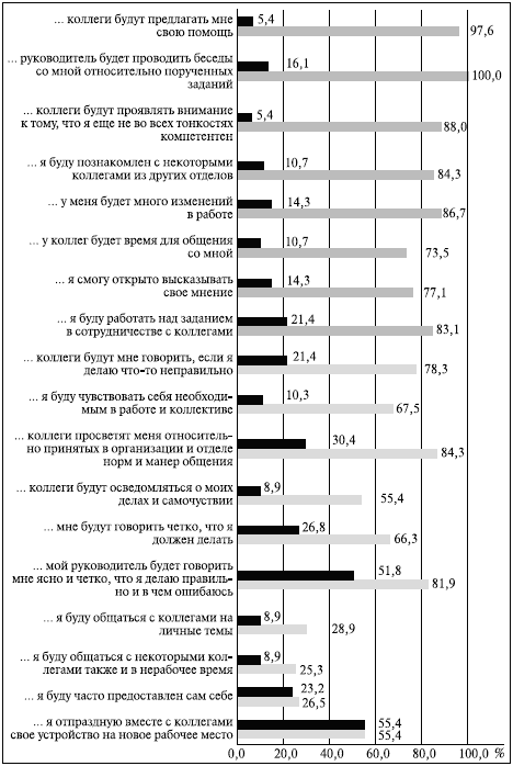 Рис. 5.18. Ожидания от первого рабочего дня и разочарования в них