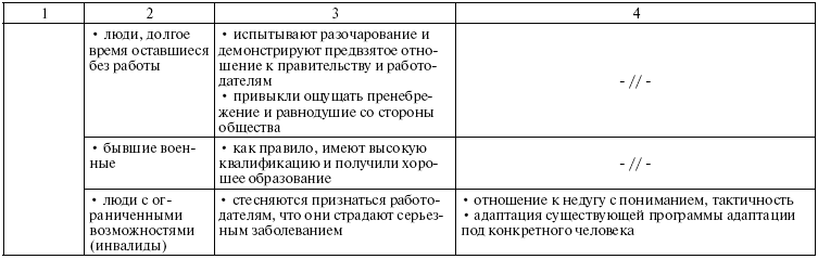 13. Какова специфика адаптации различных категорий работников?