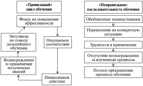 Несмотря на все преимущества процесса непрерывного обучения, специалисты отмечают существование определенного разрыва между тем, как оно должно происходить, и его реализацией на практике, между «правильным» и «неправильным» циклами обучения[160] (рис. 5.22).