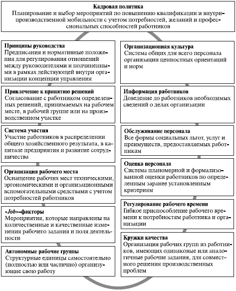 – трудовое или организационное стимулирование (наличие творческих элементов в процессе труда, возможность продвижения по службе);