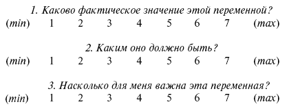 Основываясь на собственных потребностях и представлениях о работе, каждый респондент отвечает на три вопроса, относящиеся к каждому утверждению: