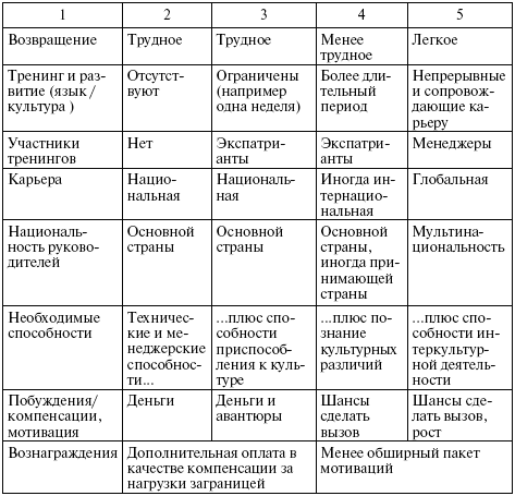 Успешность работника интернационального предприятия зависит от наличия у него профессиональной, социальной, предпринимательской и личностной компетентности, семейной ситуации, способностей к изучению иностранных языков. Приведенные в табл. 8.5 показатели успешности нельзя рассматривать как статичные. Эволюция деятельности предприятия в международном формате предполагает, что планировать действия за рубежом нужно с учетом изменений, происходящих в стране, ее рыночных условий.