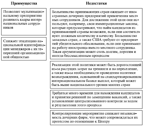 Особенность такой политики замещения должностей – поиск и назначение на ключевые посты организации лучших работников без учета их национальности. Преимущества и недостатки такой политики приведены на рис. 8.7.