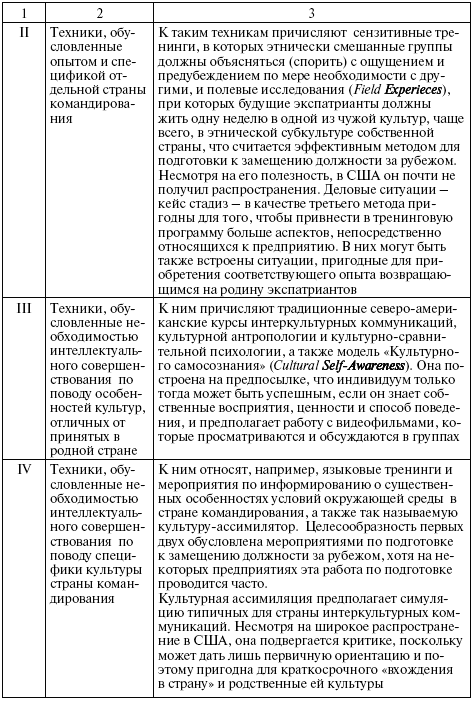 Продолжительность развития посредством интеркультурного тренинга значительна по времени, поэтому для его осуществления нужно, во-первых, предусмотреть «достаточный плановый горизонт» и, во-вторых, увязать план развития персонала с планом продвижения (планом построения карьеры). Это особенно важно в случае предполагаемого интернационального замещения вакансии посредством ротации или формирования определенных квалификационных предпосылок для дальнейших карьерных шагов. Недостаточная подготовка (или отказ от нее) для иностранного замещения обусловлена, во-первых, недостатком времени перед отъездом и, во-вторых, отсутствием тренинговых мероприятий, по форме и содержанию соответствующих потребности. Исправить такое положение может систематическая разработка планов по развитию персонала, предусматривающих, в том числе, появление вакансий и подготовку работников предприятия к их замещению.
