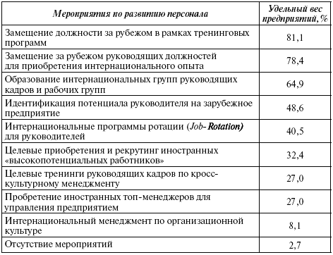 Для этих четырех групп могут формироваться различные ступени интернационального обучения. Согласно практике, необходимо принимать во внимание, что пограничным критерием для осуществления обучения могут быть как формирование так называемых гомогенных (однородных) программ (это достигается через необходимое дифференцирование по стране происхождения сотрудника и принимающей стране), так и по иерархии должностей и функций участников обучения. Ступенчатая система подготовки, кроме того, дает возможность проводить контроль выбора адресатов на каждом этапе. При этом значительно снижается риск принятия неверного решения, например при командировании сотрудников в зарубежный филиал.