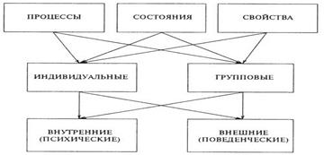 Подводя итог сказанному, представим в виде схемы основные типы явлений, которые изучает современная психология (рис. 2, табл.1).