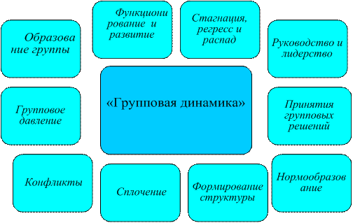 Сегодня данное понятие широко используется в социальной психологии, обозначая совокупность внутригрупповых социально-психологических процессов, развернутых во времени и характеризующих весь спектр жизнедеятельности группы и его этапы: образование, функционирование, развитие стагнацию, регресс, распад, а также процессы руководства и лидерства. Принятия групповых решений, нормообразование, формирование функционально-ролевой структуры, сплочение, конфликты, групповое давление.