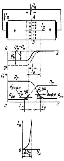 Зависимость тока диффузии от прямого напряжения имеет вид