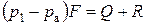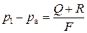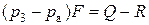 При ходе поршня вниз движущей силой является разница (Q – R), а силой сопротивления – давление воздуха под поршнем (p – p а) F. Поэтому для точки 3 справедливо выражение