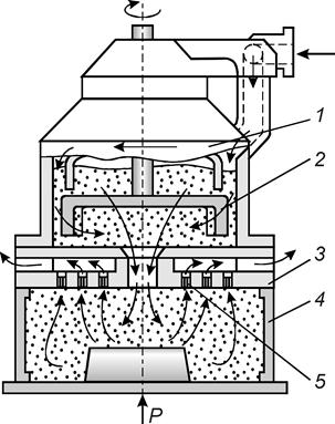 Процесс уплотнения на пескодувных машинах заключается в следующем (рис. 30): на столе машины установлена опока 4, которую стол прижимает к надувной плите 3 пескодувного резервуара 1.