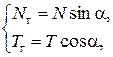 Разложим по правилу параллелограмма силы N и Т на вертикальные и горизонтальные составляющие. Из полученных прямоугольных треугольников будем иметь