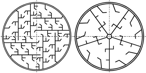 Рис. 46. Варианты расположения полок внутри барабанного сушила |