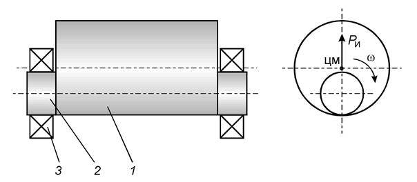 При вращении такого вала возникает сила инерции, вектор которой проходит через ось вращения и центр масс