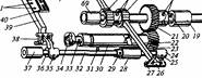 | Своевременность подхода носика челнока к игле обеспечивается поворотом челнока 34 после ослабления винтов 33. Следует добиться того, чтобы при подъеме иглы из крайнего нижнего положения на 1,6... 1,9 мм носик челнока был выше ушка иглы на 0,9... 1,1 мм. Зазор между носиком челнока 34 и иглой, который должен быть равен 0,1...0,05 мм, достигается осевым перемещением втулки после ослабления винта 31. | ![]() |