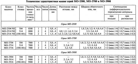 Фирма «Джуки» (Япония) — основной мировой изготовитель обметочных и стачивающе-обметочных машин. Технические характеристики машин серий МО-2500, МО-3700 и МО-3900 приведены в табл. 2.