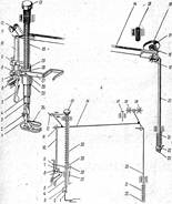 Заполните таблицу. Какими цифрами обозначены детали механизма нитепритягивателя на схеме: