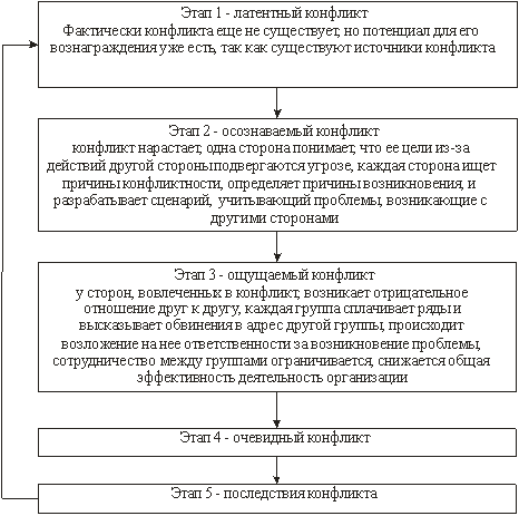 Одной из наиболее широко признанных моделей конфликта является модель Луиса Понди, который рассматривал конфликт как динамичный процесс, протекающий по пяти последовательным этапам