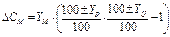 где ΔСм — изменение себестоимости материальных затрат, %; Ум — удельный вес затрат на данный материал в процентах к себестоимости продукции в отчетном периоде; Ур — процент изменения нормы расхода данного материала; Уц — процент изменения цены на данный материал.