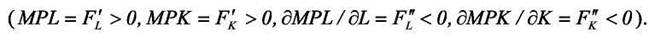 Рассмотрим фирму, которая производит продукцию, используя два фактора производства труд (L) и капитал (K). Технология описывается производственной функцией F(K,L). Будем считать, что функция возрастает по каждому аргументу и строго вогнута по совокупности аргументов так, что в результате предельный продукт каждого фактора положителен и убывает с ростом данного фактора