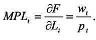 Из первого условия получаем, что предельный продукт труда должен быть равен реальной заработной плате: