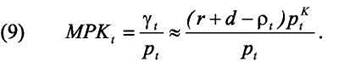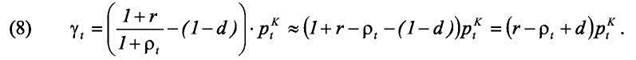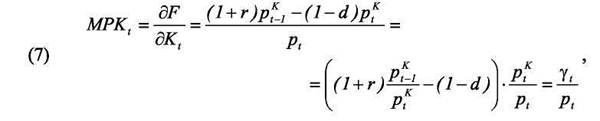 где γt - издержки на единицу капитала Йоргенсона. Преобразуем выражение для издержек капитала, обозначив через ρ темп удорожания единицы капитальных благ (то есть pt /pt-1K =1+ ρt), тогда