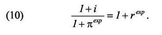 Следует отметить еще один важный момент. Как мы видели, инвестиции отрицательно зависят от реальной ставки процента r. Однако в реальности никто не знает, каково же будет значение реальной процентной ставки, поскольку никто не может точно определить величину инфляции. Принимая решения, инвесторы ориентируются на ожидаемую реальную ставку процента (rexp), которая получается из номинальной процентной ставки (i) с поправкой на ожидаемую инфляцию (πexp):
