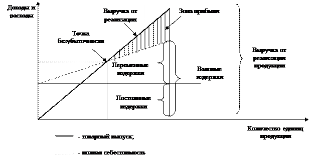Важным показателем для принятия управленческих решений на уровне предприятия является точка безубыточности (критическая точка). Эта точка характеризует объем производства и реализации продукции, при котором предприятие не имеет ни прибыли, ни убытков.