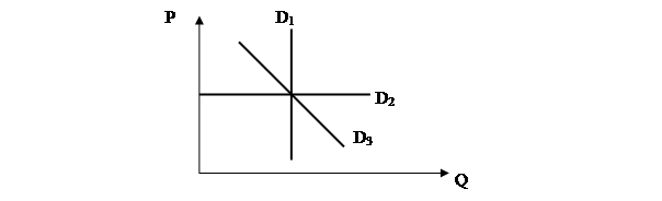 D2 – совершенно эластичный спрос; D3 – единичная эластичность спроса.