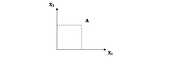 Рисунок показывает, что если мы возьмем на графике точку А. координатами которой будут соответствующие количества первого (Х1) и второго (Х2) видов благ в данном наборе А, то она будет представлять набор А.